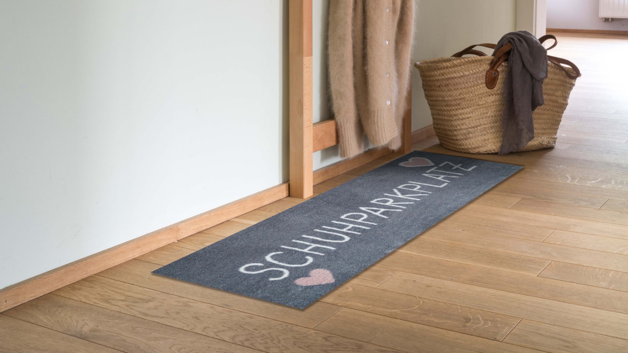 Eine der beliebtesten Matten bei Fussmattenliebe. Der Schuhparkplatz von Akzente in zartem Grau mit zwei Herzen.