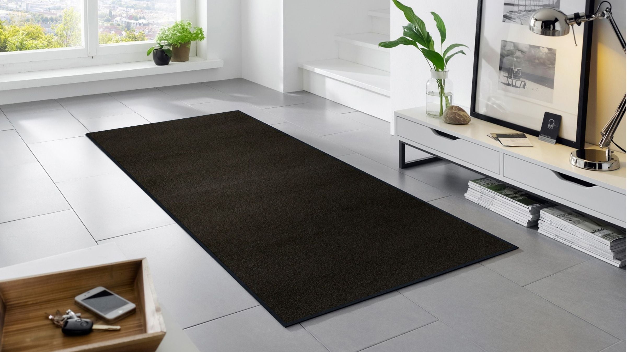 Unifarbene Fußmatten in Schwarz bringen stilvolle Eleganz in dein Zuhause. Der zeitlose Farbton wirkt modern und edel zugleich und verleiht deinem Eingangsbereich eine klare, gepflegte Ausstrahlung.