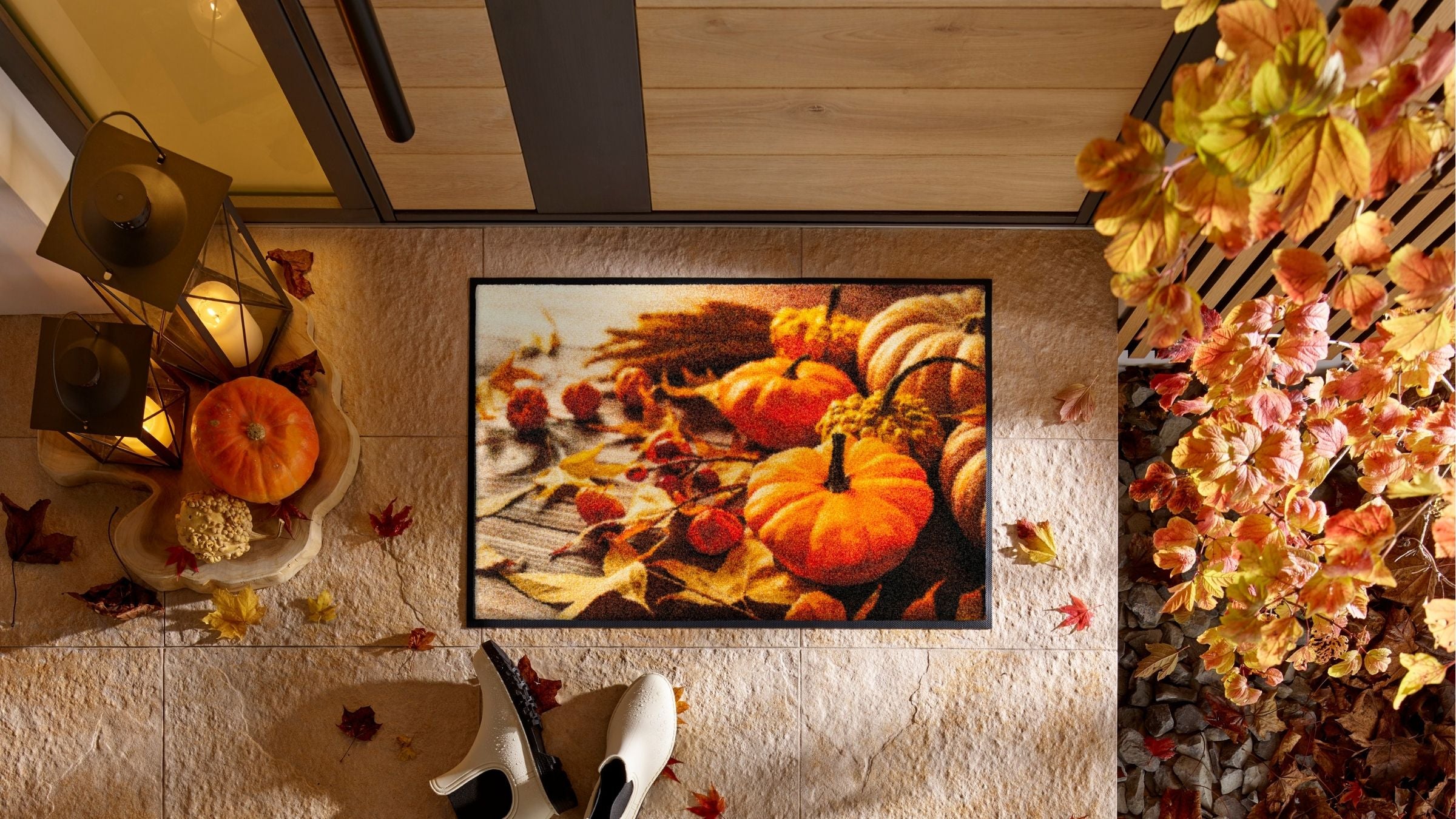 Herbstliche Fußmatten bringen warme Töne und Gemütlichkeit an die Tür. Von dezenten Laubmustern bis zu kräftigen Kastanienfarben – die Matten setzen stimmungsvolle Akzente im Eingangsbereich.